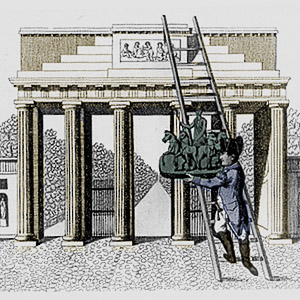 In den letzten Tagen des Krieges wurde das Brandenburger Tor schwer beschädigt. In der dritten Säule, von Westen gesehen, verblieb nach einem Granatbeschuss nur noch ein Stummel. Nach Kriegsende erfolgte eine Sicherung durch Holzstiele und notdürftig hergestellten Ziegelbeton. Dessen Tragfähigkeit wurde bei der Sanierung als unbestimmbar eingeschätzt, ein Austausch des Säulensegments war erforderlich.